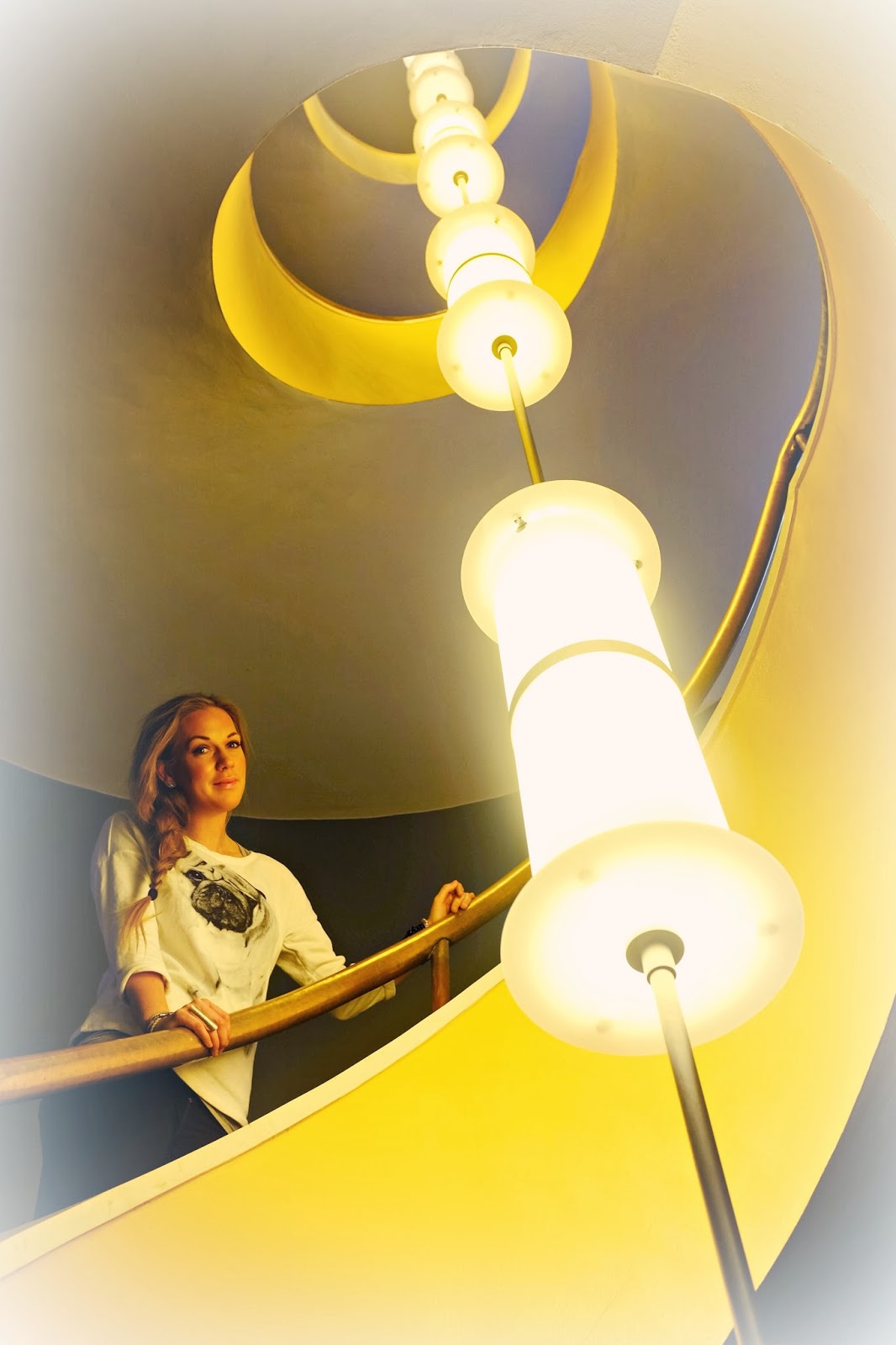 Ja, og jeg jeg gikk jo glipp av seminaret som ble holdt av en av gjestene som er her for å styre med eksperimentet denne uken - der jeg kunne ha lært mye mer om hva det er de prøver å finne ut av - fordi jeg hadde klart å se feil om når det skulle være; jeg trodde det skulle være på tirsdag, og konkluderte dermed med at da var jo jeg på Kontaktkonferansen, men så skulle det jo være i dag - men siden jeg hadde trodd jeg gikk glipp av det så ble jeg intervjuet av Naturfagssenteret da seminaret skulle være istedetfor. Jaja, det går litt i surr for meg innimellom (stadig vekk? :P ), men her er i alle fall noen av bildene som ble tatt av søte Rim som intervjuet meg - bare elsker <3 trappeoppgangene i Fysikkbygningen, altså!